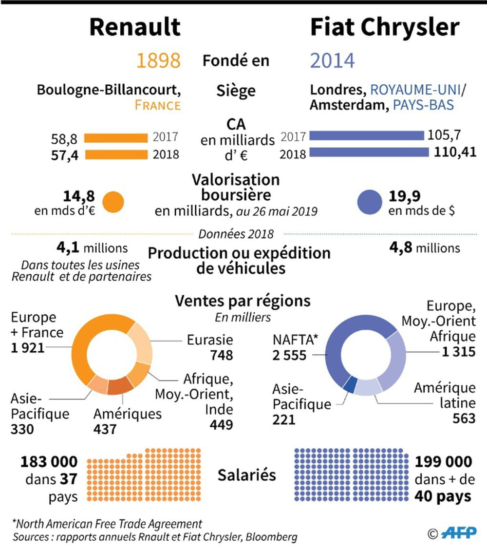 Cette fusion aurait créé un groupe de plus de 30 milliards d'euros de valorisation boursière, produisant 8,7 millions de véhicules par an. Le projet prévoyait la création d'une holding basée à Amsterdam et détenue à parts égales par les actionnaires de Renault et FCA.