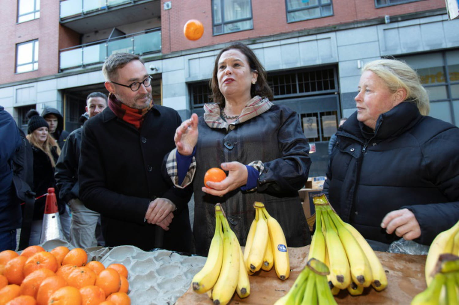 "Je pourrais bien être le prochain Taoiseach (chef du gouvernement en gaélique)!", a-t-elle lancé à ses supporters en liesse, posant avec un bébé ou jonglant avec des fruits pour les photographes.