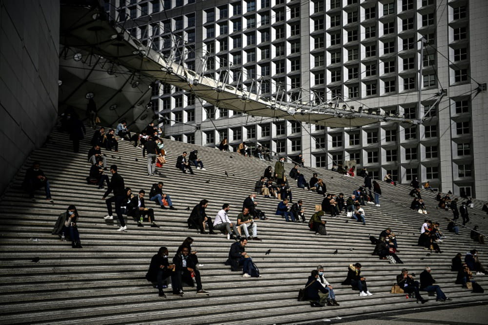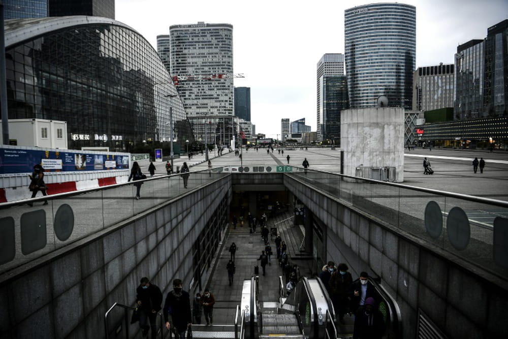 Les rames du métro et du train de banlieue RER A déversent toujours au petit matin des grappes de travailleurs, certes masqués et silencieux, mais nombreux. Les terrasses de restaurants affichent complet au déjeuner. Les 564 hectares du quartier d'affaires semblent occupés.