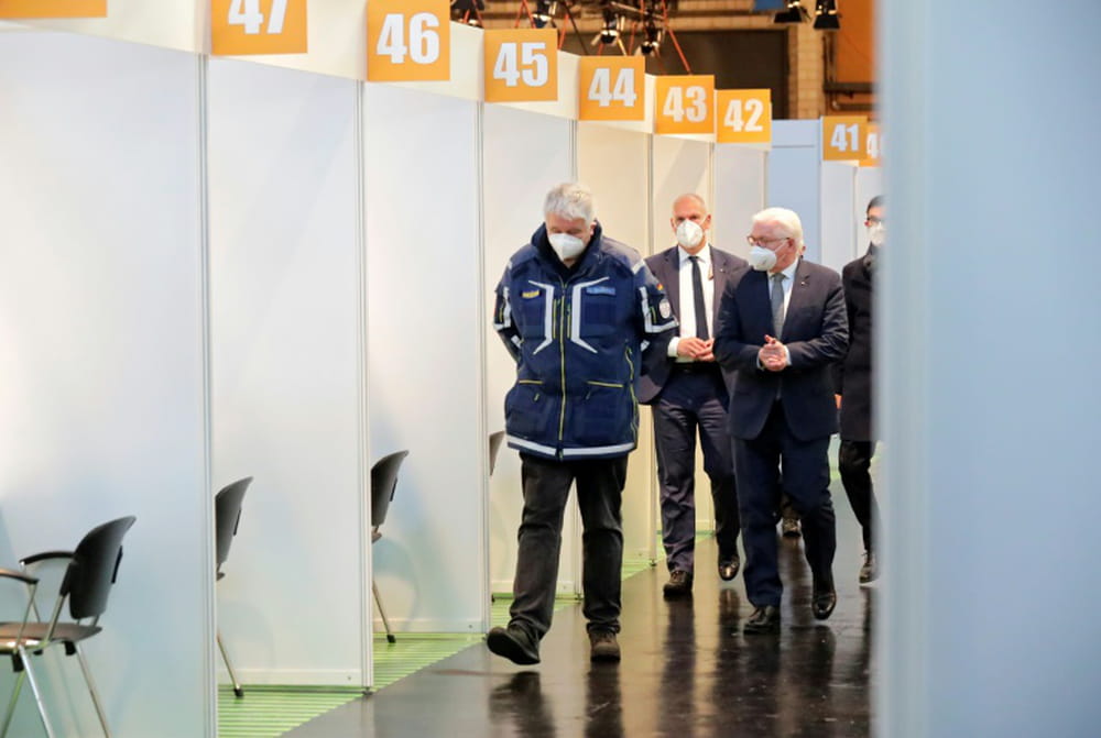 Chargé de superviser les six centres de vaccination que Berlin veut mettre sur pied dans le cadre d'une campagne nationale, il bâtit une mini-station de vaccination avec comptoir d'enregistrement et allées de circulation.