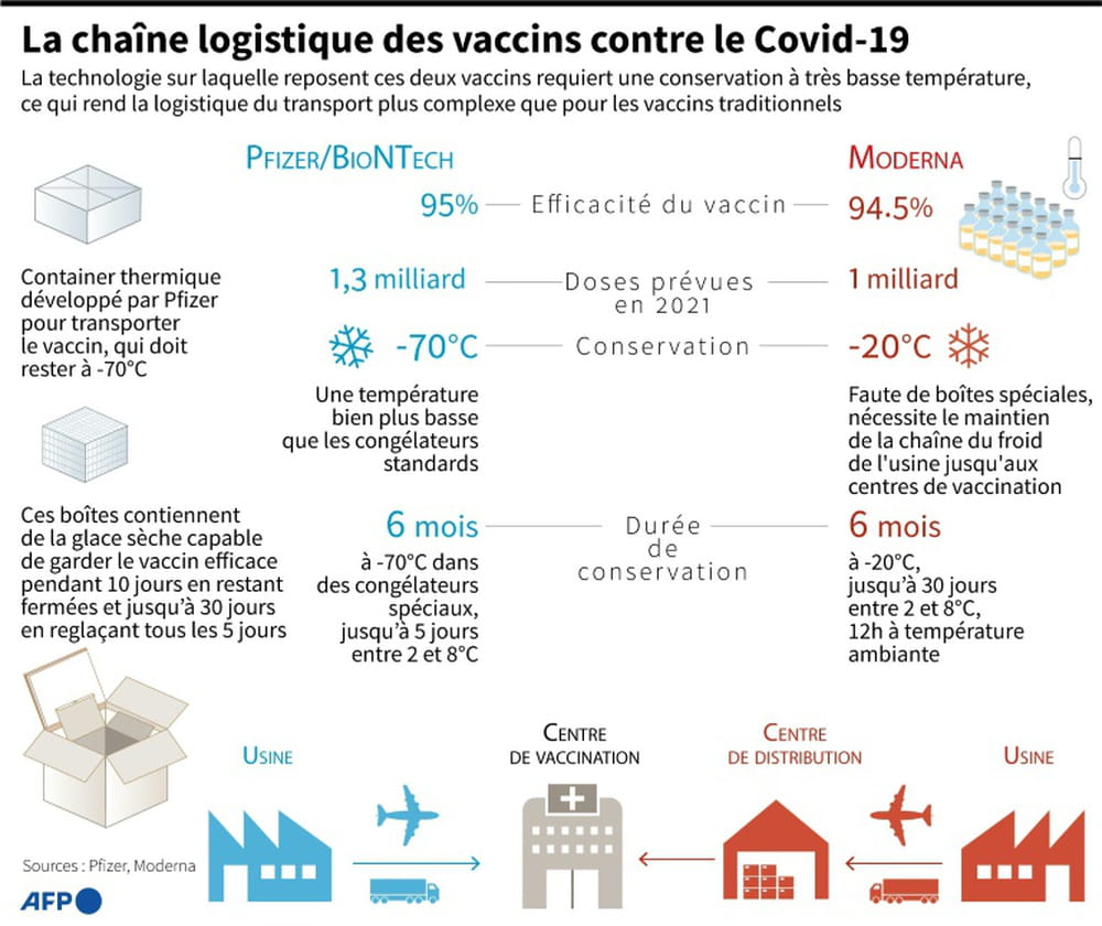 Elles sont notamment acheminées vers les 25 centres de distribution désignés par les autorités fédérales allemandes qui les transporteront ensuite dans les 294 districts du pays, selon BioNTech.