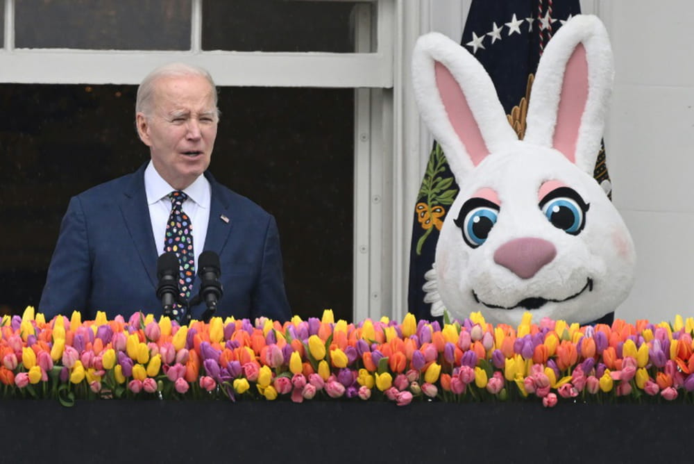 En ce lundi censé préfigurer pour les chrétiens une éternité paisible et radieuse, Joe Biden et son épouse ont eux assisté à la traditionnelle course à l'oeuf dans le jardin de la résidence présidentielle. Le jeu enfantin, qui se pratique avec une cuillère, consiste à pousser un œuf sur la pelouse, en présence d'un lapin géant, symbole de Pâques aux Etats-Unis.