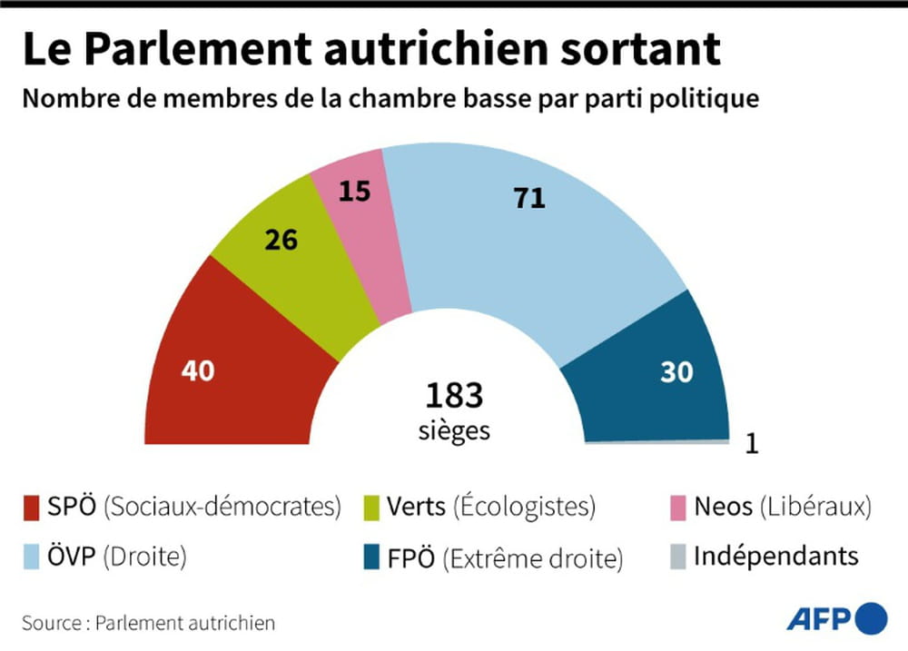 Les sondages donnent le FPÖ à 27%, contre 25% pour les conservateurs de l'ÖVP qui tombent de haut. Au pouvoir depuis 1987 dans ce pays prospère d'Europe centrale, ils avaient décroché 37% des voix en 2019, emmenés par le jeune Sebastian Kurz.
