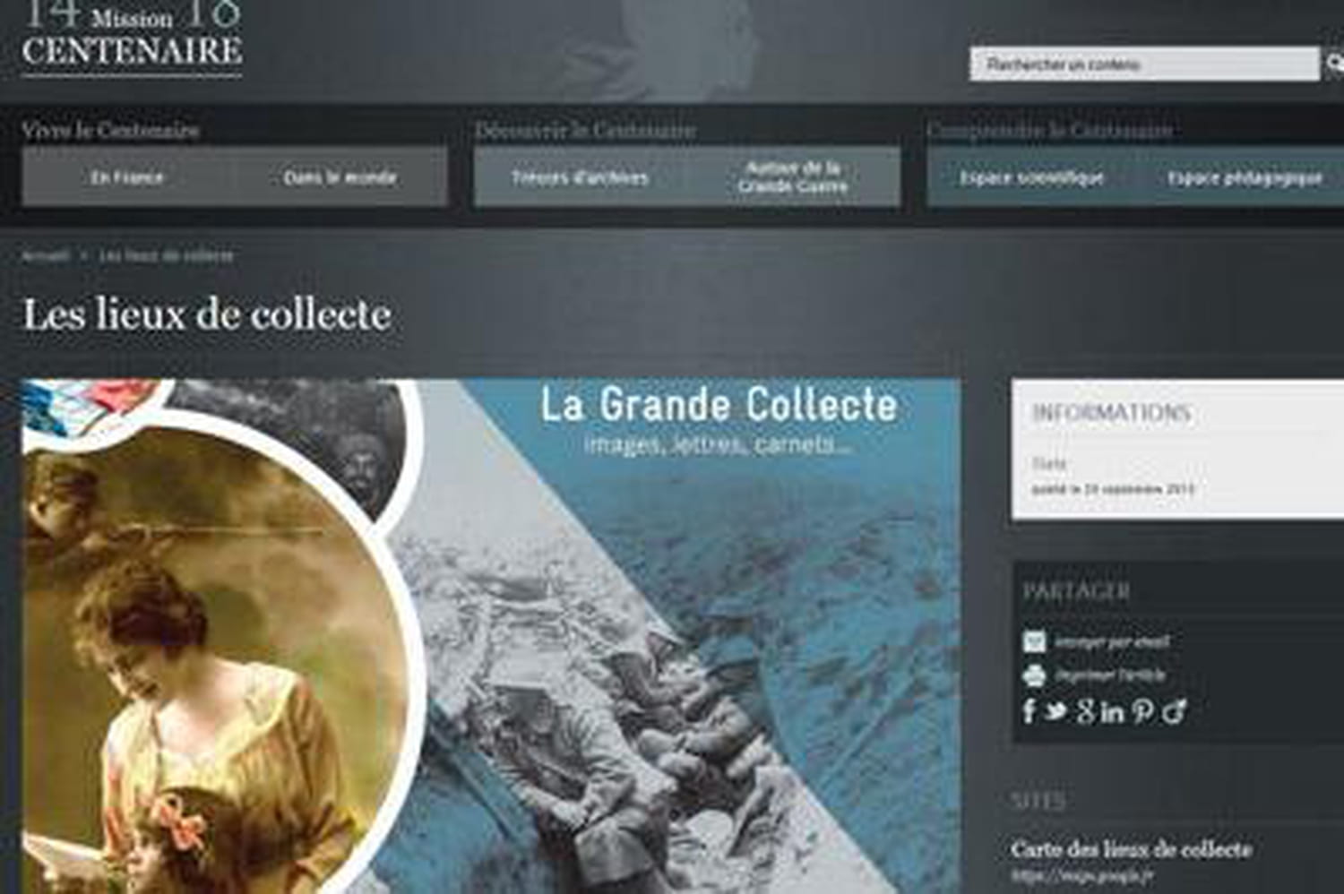 Du 9 au 16 novembre, chacun est donc invité à venir apporter ses documents relatifs à la Première Guerre mondiale afin qu'ils soient identifiés et numérisés. En tout, ce sont 73 points qui se répartissent dans l'Hexagone pour cette "Grande collecte". Les documents numérisés seront restitués à leurs propriétaires et mis en ligne, s'ils l'acceptent. Cette grande collecte a déjà été menée dans dix autres pays européens.