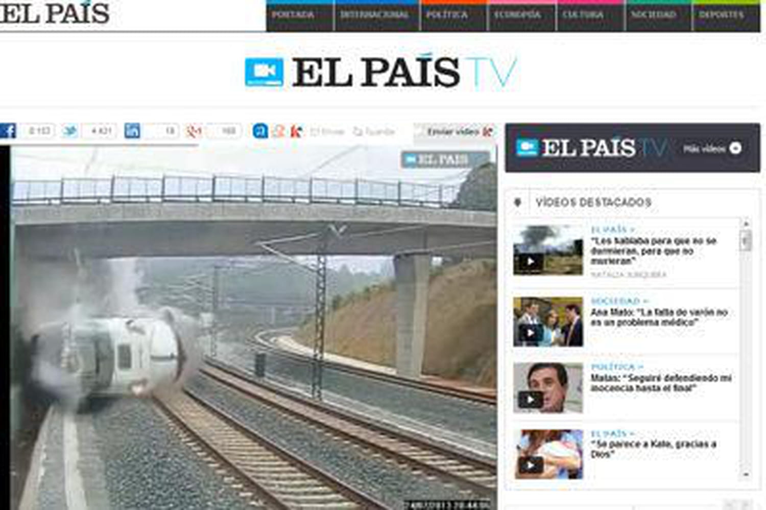 Sur le site d'El Pais, une vidéo de l'accident a été dévoilée ce jeudi 25 juillet (voir vidéo ci-dessous). Des images, relayées par l'AFP, qui montrent la violence du choc, qui permettent de réaliser l'ampleur du drame, survenu à 20h44, heure locale. On peut y voir le train gris arriver à grande vitesse, et la partie située juste derrière la locomotive dérailler, entraînant l'ensemble du train hors des voies. La tête du train se renverse et vient percuter la caméra de surveillance des chemins de fer espagnols.