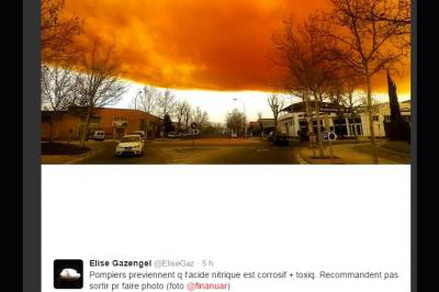 Un immense nuage orange a envahi, ce jeudi, le ciel d'Igualada, une localité située à 70 km de Barcelone, en Espagne. Cet épais amas coloré pourrait être la conséquence de l'explosion d'une usine chimique, où un incendie s'était déclaré tôt dans la matinée. Trois personnes ont été blessées à la suite de cet incendie, et on ignore leur état de santé. Le feu aurait été déclenché par le mélange accidentel de deux produits chimiques, au moment où un camion déchargeait. Le nuage se serait formé aux alentours de 9 heures.