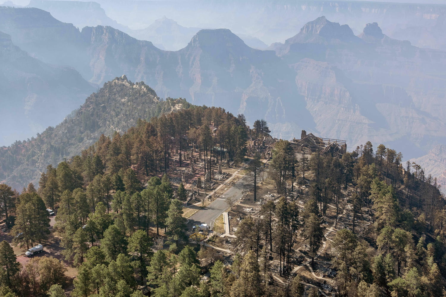 Si aucune victime n'est à déplorer, "entre 50 et 80 infrastructures" ont été détruites selon les autorités, dont l'hôtel emblématique des années 30, le Grand Canyon Lodge, ainsi que le centre d'accueil de la rive nord et plusieurs cabanes pour les visiteurs. "Par conséquent, la zone aménagée de la rive nord reste fermée au public pour le reste de la saison 2025" a indiqué le service des parcs nationaux sur leur site. Tous les services aux visiteurs, hébergements et installations aménagées sont désormais inaccessibles. Visité chaque année par quelques 4,5 millions de touristes américains et étrangers, le parc du Grand Canyon avaient fait évacuer en juillet un demi-millier de touristes et employés.