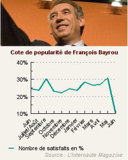 Mobilisation des votants de droite ou raz-de-marée post-européennes ? François Bayrou chute à la dernière place de votre cote de popularité en juin. Classement.