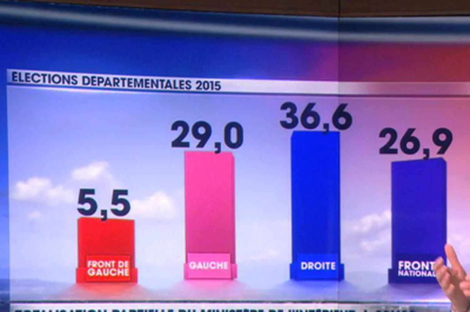 Le résultat des cantonales 2015 est cruel pour le Parti socialiste : avec un score de 22,66 %, il est largement dominé par l'UMP qui obtient 33,97 % des voix, tandis que le FN récolte 26,68 % des votes. Au premier tour de ces élections, pourtant, le PS semblait plutôt soulagé d'avoir échappé au pire : avec presque 22 % des voix, le score n'avait finalement pas été aussi catastrophique que ce craignaient les responsables de gauche. Ce second tour vient rappeler que si ce scrutin n'est pas une "catastrophe" pour la majorité socialiste, elle est tout de même une cuisante défaite en forme de message de contestation à la politique menée par le gouvernement. Le PS recule en effet dans la très grande majorité des cantons. Et perdrait, selon le CSA, entre 26 et 30 départements, soit environ la moitié de ce qu'il possédait.