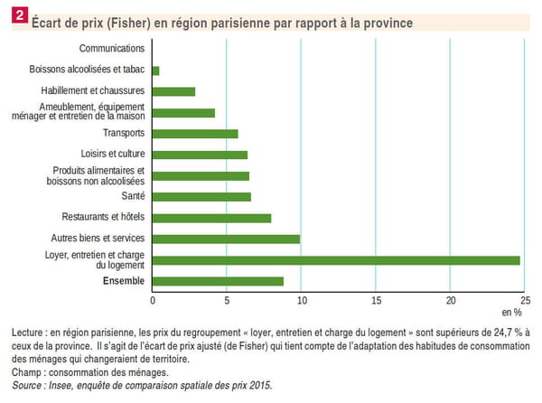 Vivre en région parisienne coûte 9 % plus cher qu'en province