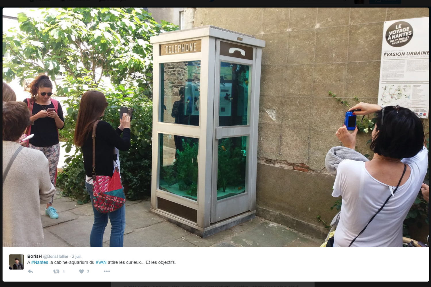 À #Nantes la cabine-aquarium du #VAN attire les curieux... Et les objectifs. pic.twitter.com/g94TAeh0Ew