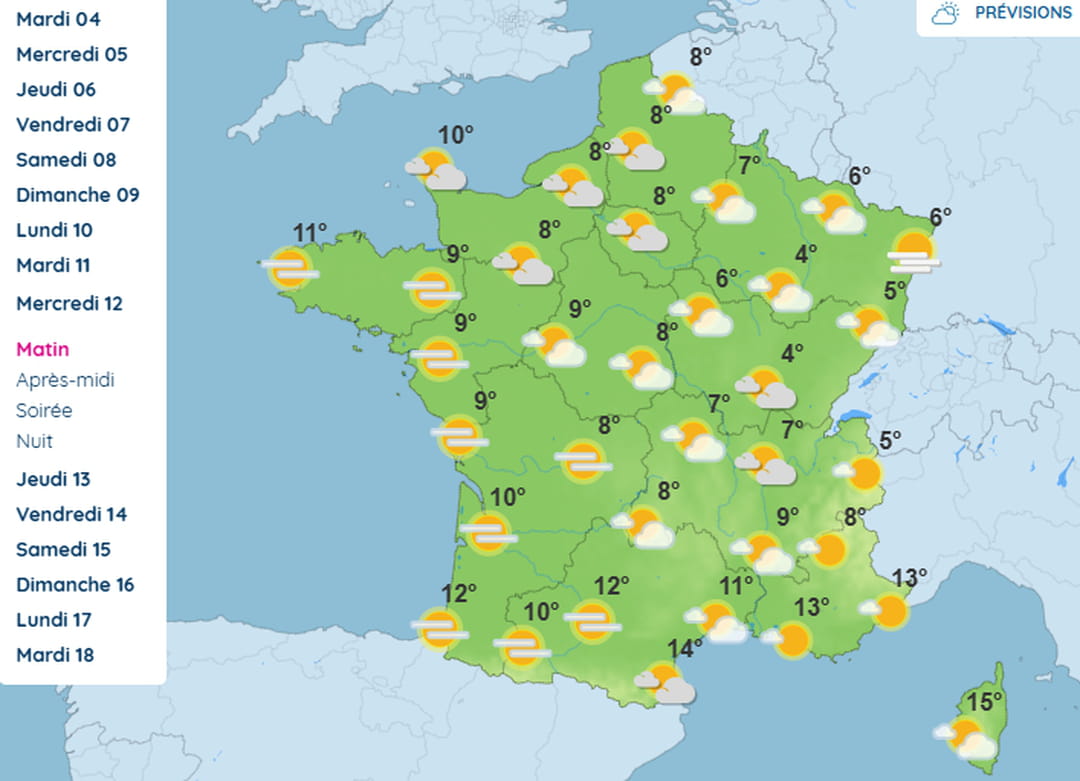 Les jours suivants pourraient être particulièrement frais. Dans la matinée de mercredi, les minimales pourront tomber à seulement quelques degrés avec 6 à Paris, 4 à Reims, Strasbourg ou encore Metz. Cela pourrait même tomber à 1 à Auxerre et 0 à Metz. L'après-midi, les 10 degrés ne seront que ponctuellement franchis, à part dans l'extrême sud. Le site Tameteo prévoit aussi des minimales très basses au coeur de la nuit à Nancy, l'une des villes les plus froides de France, avec -1 degré le 11 novembre et 0 le 13 novembre.
