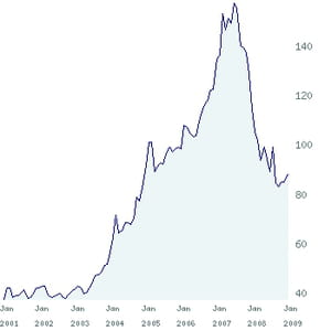 Evolution du cours de Thermador group entre 2001 et 2009 © Journal du Net
