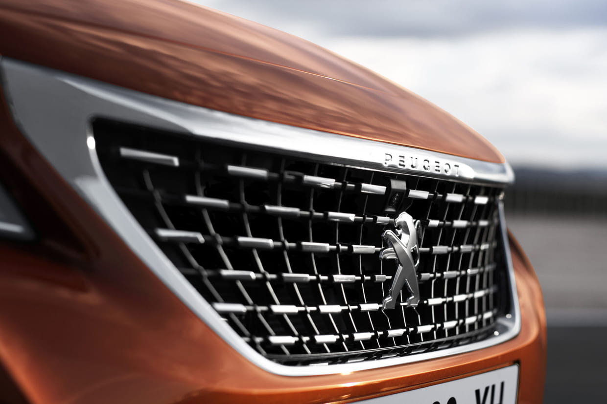 La calandre à facettes chromées est imposante. Le Lion est cette fois au centre de la calandre et non plus sur le capot moteur. Le nom Peugeot est inscrit juste au-dessus.