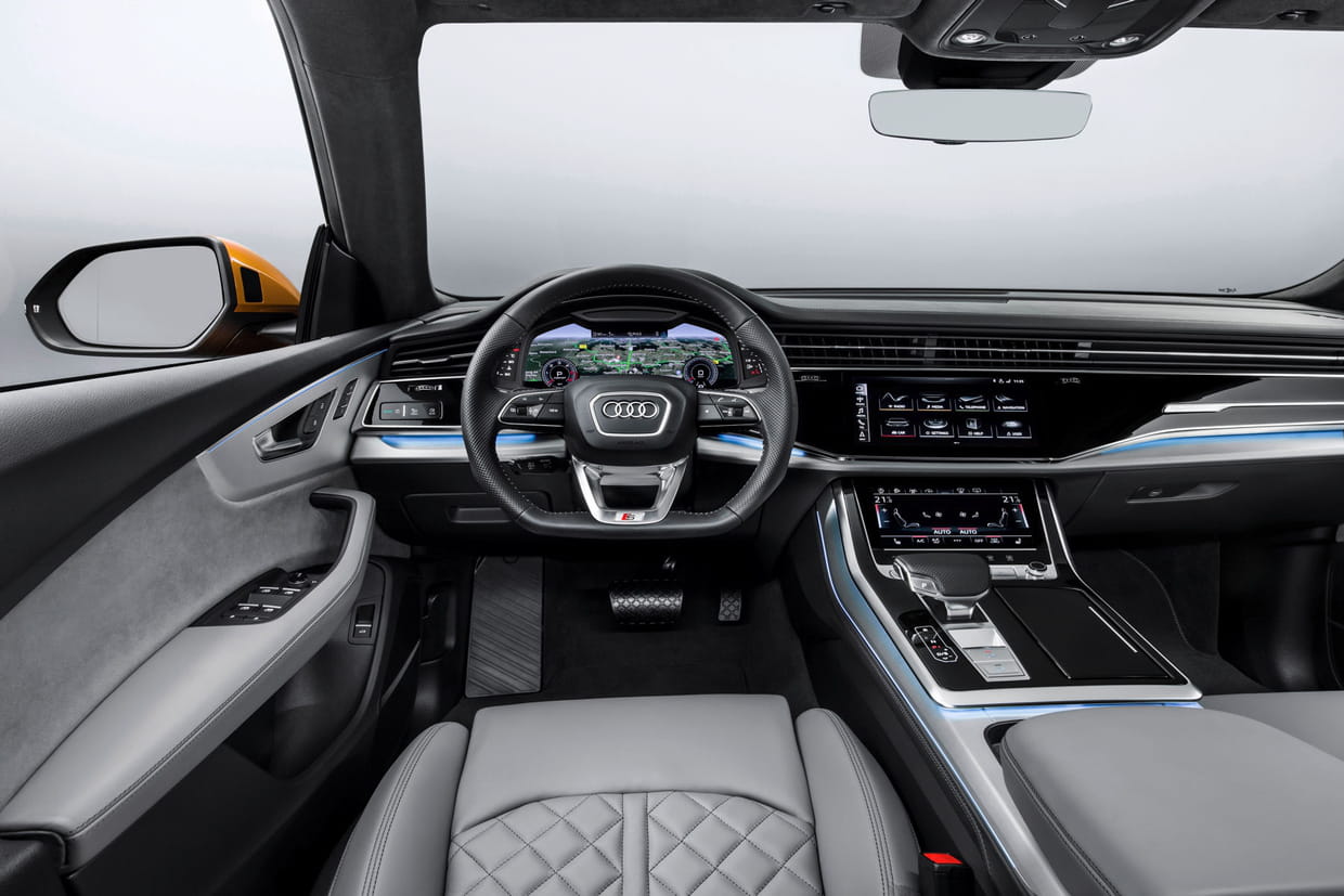 Au lancement en juillet, le Q8 aura un moeur diesel V6 3.0 TDI de 286 chevaux, relié à une transmission intégrale Quattro et quatre roues directrices.