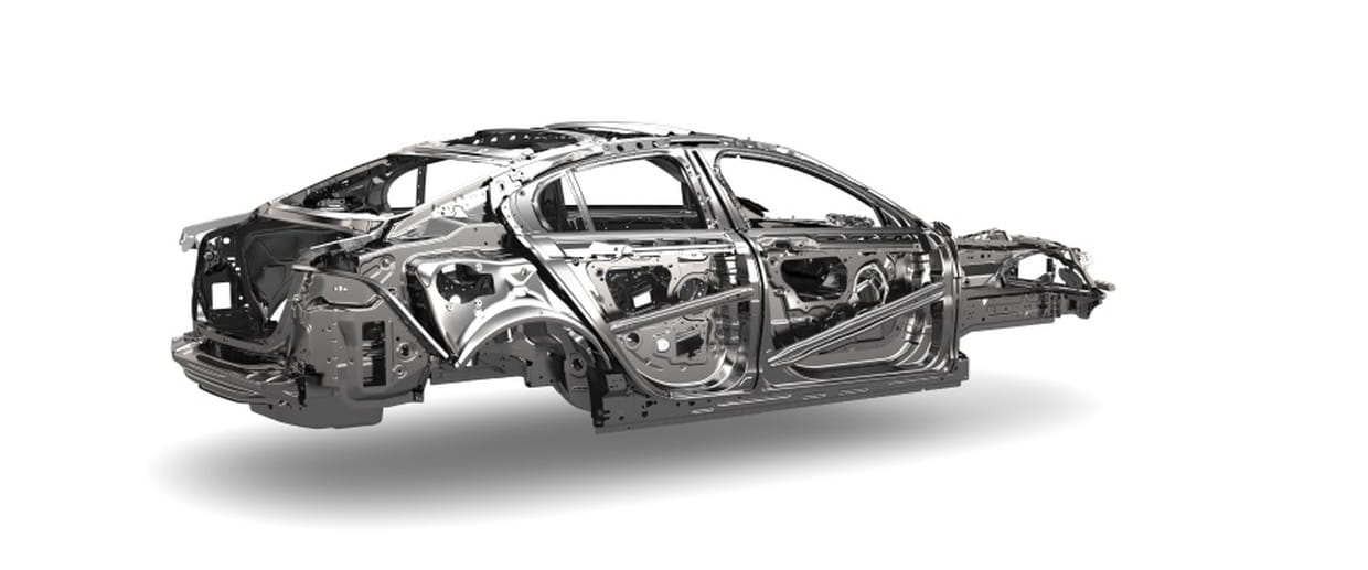 Capot moteur en aluminium, alliages d'aluminiums de qualités différentes mixés avec du magnésium... 75% de la voiture est composée de ces matériaux qui sont collés et rivetés. La XE n'a d'acier que les portes et le coffre. Pour le coup, son poids est limité à 1474 kg. Pour le côté écologique, Jaguar emploie un alliage produit à partir de matériaux recyclés.