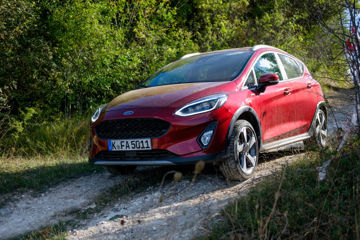 La Ford Fiesta Active n'est pas un 4x4 mais peut quand même franchir quelques petits obstacles. En témoigne cette grosse descente sur un chemin, en haut de laquelle nous avons légèrement levé l'une des roues arrières. La voiture est passée sans réelle difficulté, là où une Fiesta classique aurait sans doute eu plus de mal, voire aurait pu subir de la casse. On peut remercier Ford d'avoir rehaussé la garde au sol avant de nous envoyer sur ce chemin périlleux !