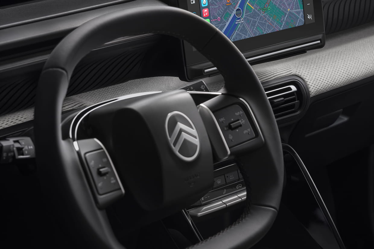 Le volant de forme ovale, réglable en hauteur et en inclinaison, est plus petit que sur la C3 de troisième génération. Il est à effet cuir uniquement dans la finition Max. Ses boutons de commande sur toutes les versions permettent au conducteur d'avoir facilement accès au réglage du volume ou à l'usage de la téléphonie.