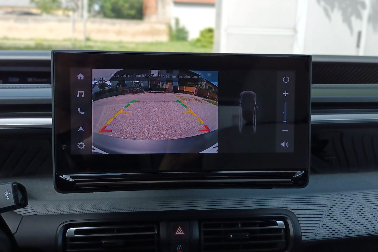 La caméra de recul, disponible sur la plus haute des deux finitions, était elle bien opérationnelle dès qu'on sélectionnait le R" de "Reverse" sur la boîte automatique. C'est appréciable au moment de stationner et très pratique pour une citadine dont le destin est de beaucoup rouler en ville. Ceux qui n'aiment pas faire de créneaux ne pourront plus s'en passer.