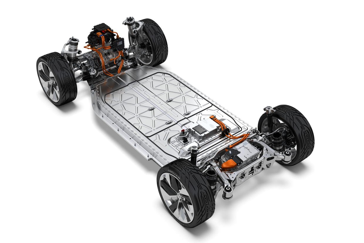 Les batteries composées de 36 cellules lithium-ion sont installées sous le plancher, ce qui permet de diminuer le centre de gravité de l'I Pace Concept.