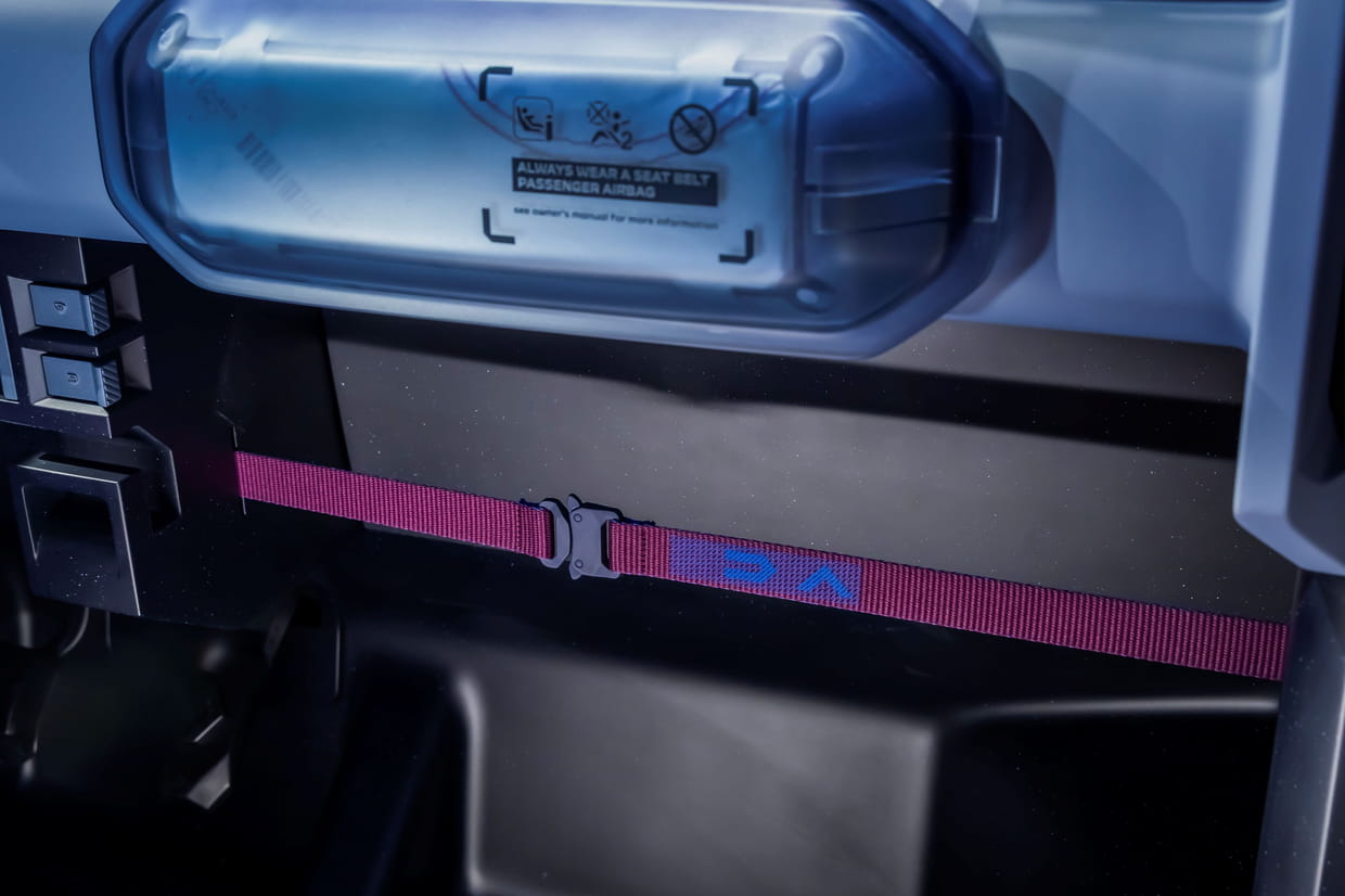 Malgré son intérieur simpliste, le concept Hipster propose de nombreux petits rangements et quelques astuces grâce aux nombreux accessoires à positionner sur les fixations YouClip. On retrouve par ailleurs deux airbags à l'avant du véhicule mais pas sur les côtés.