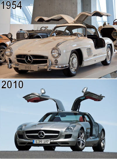 La Mercedes 300 SLR est l'une des voitures sportives les plus mythiques de l'histoire. La Mercedes SLS doit, elle, faire ses preuves. © Mercedes