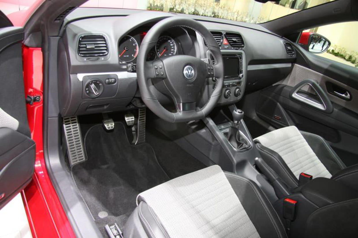 Le tableau de bord tout comme l'ensemble de l'intérieur adopte une présentation sportive. De série, le Scirocco offre au conducteur un siège baquet sport, un volant sport à méplat et des pédales recouvertes d'aluminium.