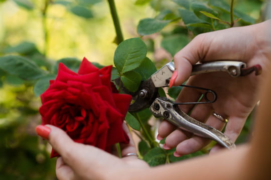 Pour permettre à la lumière et à l'air de circuler, séparez les branches qui se croisent et dégagez le cœur du rosier. Cela va réduire les risques de maladies et le rendre plus résistants. N'oubliez jamais d'enlever systématiquement les fleurs fanées ainsi que toutes les branches mortes ou malades.