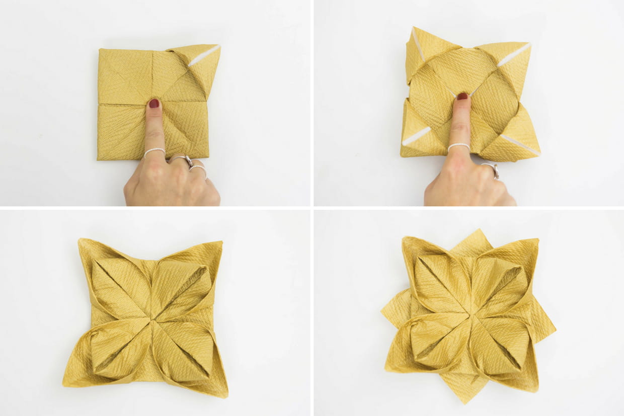 Etape 12 : Faites ressortir les quatre petits coins cachés sous le lotus.