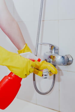 - Passez sur la robinetterie un chiffon imbibé d'eau chaude et de vinaigre blanc et frottez avec une brosse pour faire disparaître le calcaire.
