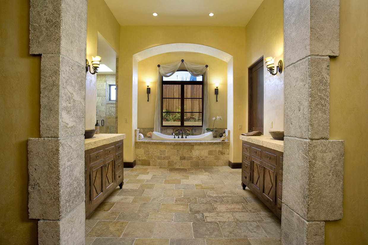 Une salle d'eau en pierre naturelle
