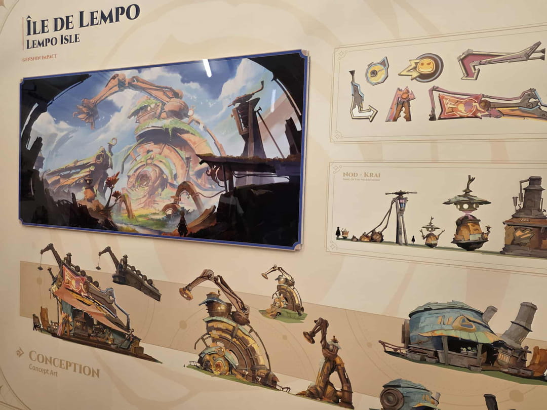 Nommée après le monde actuel de Genshin Impact, la Teyvat Expo propose plus de 1000 m² dédiés aux environnements, personnages et concepts arts des région du jeu. Les joueurs pourront y retrouver de nombreuses informations et images exclusives de Mondstadt, Liyue, Inazuma, Fontaine, Natlan et Nod-Krai. Plusieurs expériences interactives sont également proposées et nous avons pu les tester en exclusivité avant l'ouverture officielle de l'exposition.