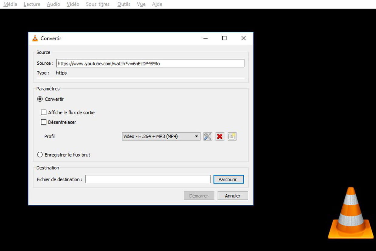 Pour cela, ouvrez la page YouTube de la vidéo désirée puis copiez son adresse telle qu'elle apparaît dans la barre d'adresse du navigateur (clic droit sur l'adresse puis Copier). Lancez ensuite VLC et cliquez sur le menu Média pour choisir Convertir / Enregistrer. Dans la boîte de dialogue qui apparaît, sélectionnez l'onglet Réseau puis cliquez avec le bouton droit de la souris dans la case Entrer une URL réseau et sélectionnez Coller. Cliquez ensuite sur le bouton Convertir / Enregistrer. En regard de la ligne Profil, sélectionnez le format de votre vidéo (par exemple Vidéo - H.264 + MP3), cliquez sur Parcourir pour choisir le dossier du disque dur où le fichier sera enregistré et cliquez sur Enregistrer puis sur Démarrer. La barre de lecture de VLC va avancer afin d'indiquer l'avancement de l'enregistrement, une étape qui peut être un peu longue en fonction de la durée de la vidéo originale.
