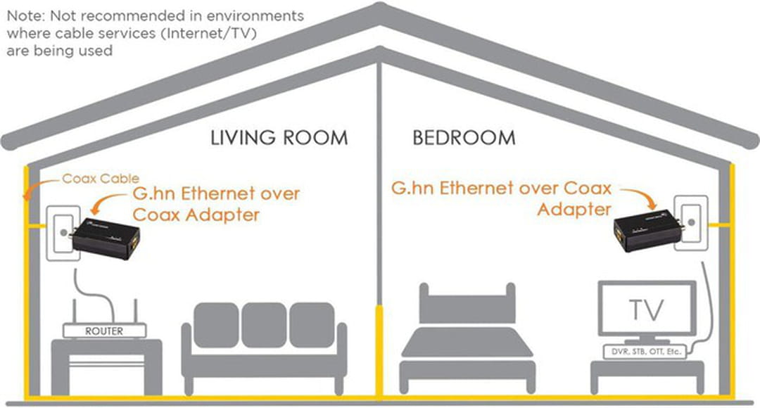 Pour réaliser cette astuce, il convient de se munir d'un adaptateur coaxiaux/Ethernet qui va se charger de faire parcourir le signal depuis la prise TV jusqu'à votre ordinateur. Ces adaptateurs sont semblables à un petit boitier. La méthode consiste à brancher l'adaptateur sur la prise murale de votre câble TV, puis de le connecter à votre routeur avec un câble Ethernet. La même opération devra être réalisée à l'autre bout, dans la pièce où vous désirez profiter d'un réseau internet. Le petit schéma ci-dessus, réalisé par le site Comtrend, permet de mieux comprendre la procédure.