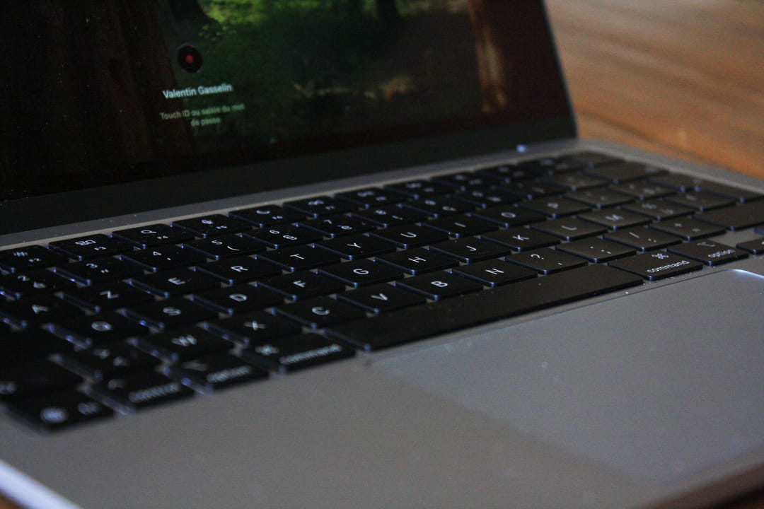 Le MacBook Air M4 présente donc, sans surprise, un châssis monolithique à la surface mate et aux bords arrondis. Même recette que le MacBook Air M3, avec la présence d'une petite encoche au bas du pavé tactile, qui aide à ouvrir l'appareil sans la moindre difficulté. Le clavier, qui dispose de touches noires, est agrémenté d'un rétroéclairage pouvant être configuré selon vos besoins. Rédiger un texte sur le MacBook M4 est toujours un plaisir particulier, les touches étant fines mais stables et mates. Le trackpad est, quant à lui, aussi doux qu'agréable à l'utilisation.