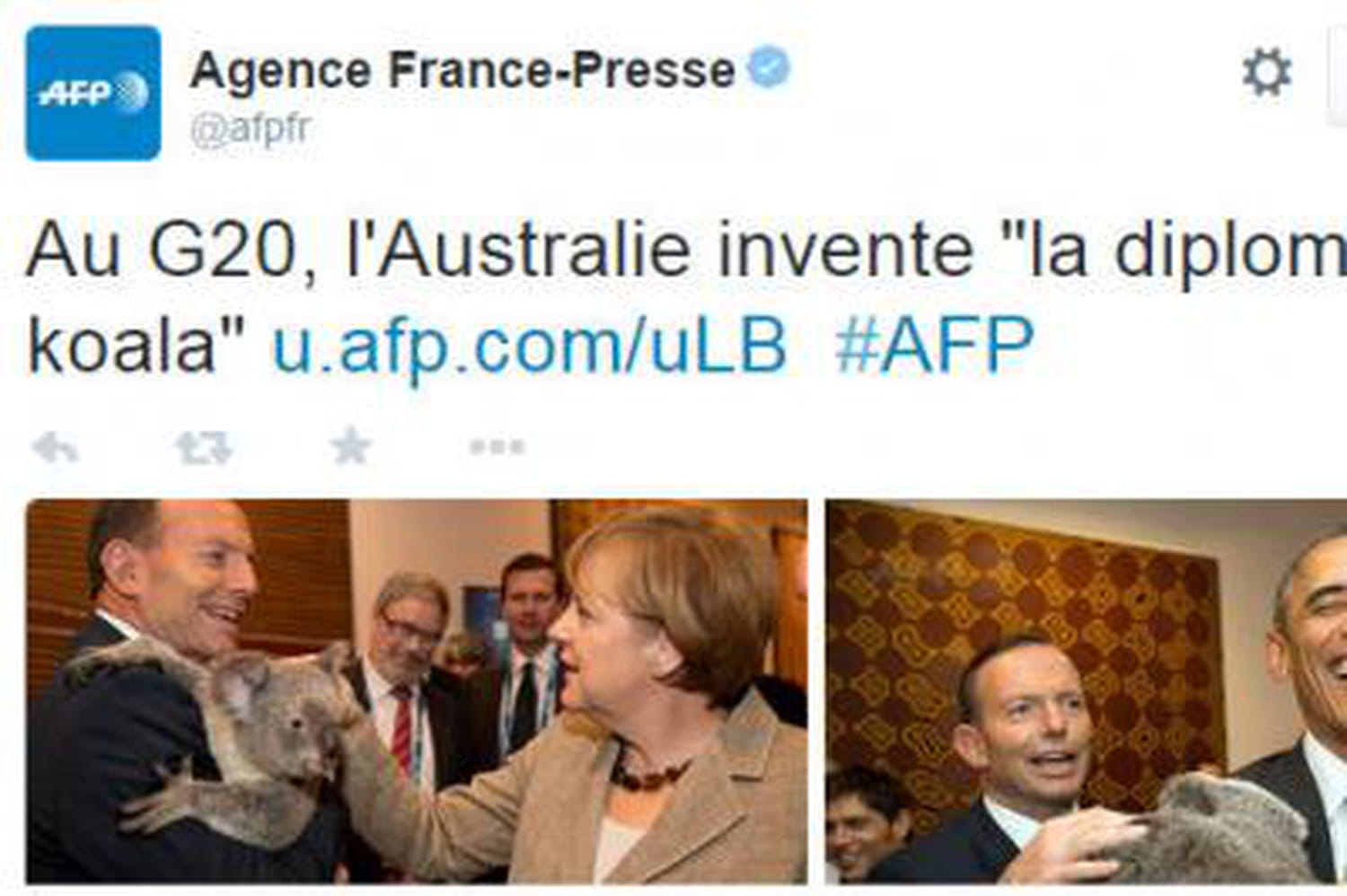 Au G20, l'Australie invente "la diplomatie du koala" http://t.co/qffCgm05dJ pic.twitter.com/nDkmk0mZYd #AFP