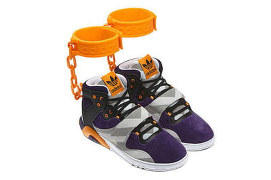 Les baskets montantes étaient surmontées de menottes attachées aux chevilles... ça vous rappelle quelque chose ? En tout cas, la communauté de fans d'Adidas s'en est ému et a tout de suite fait le rapprochement avec l'esclavage. La marque a d'abord défendu le créateur en précisant que tout rapprochement avec l'esclavage était mensonger, le styliste étant un adepte des designs légers et joyeux. Il se serait inspiré d'une peluche menottée pour créer ces sneakers. Mouais, on n'est pas très convaincu... et les amateurs de la marque à trois bandes non plus.