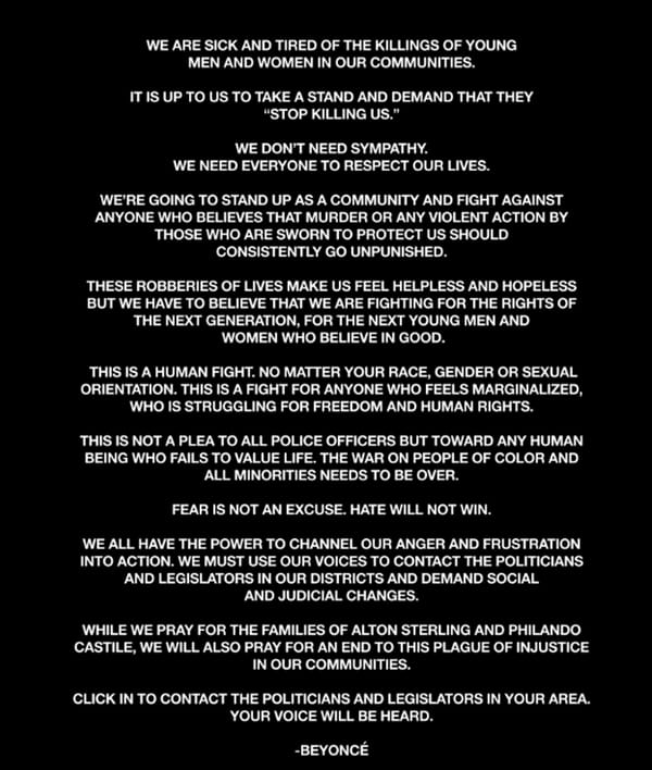 Beyoncé : "Qu'ils arrêtent de nous tuer", sa lettre ouverte à la société américaine