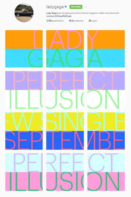 C'est sur son site officiel et sur son compte Instagram que Lady Gaga a confirmé la sortie du single "Perfect Illusion" à la rentrée. Une mosaïque d'images qui dévoilent le nom et la date de sortie du titre. Après la déception de son dernier album "Artpop", les fans attendent la chanteuse de "Pokerface" au tournant. Récemment, la superstar avait plus fait parler d'elle pour ses engagements politiques ou pour ses histoires de cœur que pour sa musique !