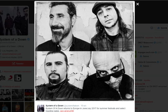 System of A Down sera la tête d'affiche de plusieurs festivals français cet été ! Le groupe de métal vient de l'annoncer sur son site a prévu une tournée dans l'Hexagone. En tout, System of A Down se produira quatre fois, dans quatre gros événements ! Les Californiens seront le groupe phare du Download Festival Paris, le 10 juin prochain. D'autres dates ont été annoncées : System of A Down se produira le 7 juin à l'Open Air Zénith de Nancy, le 20 juin au Festival de Nîmes et le 30 juin au Main Square Festival d'Arras. Toutes ces dates ont été confirmées par le groupe sur la page Facebook de System of A Down. Le quatuor de métal alternatif qui revient en France, n'a pas prévu de nouvel album et pourtant, mobilise toujours autant les foules !
