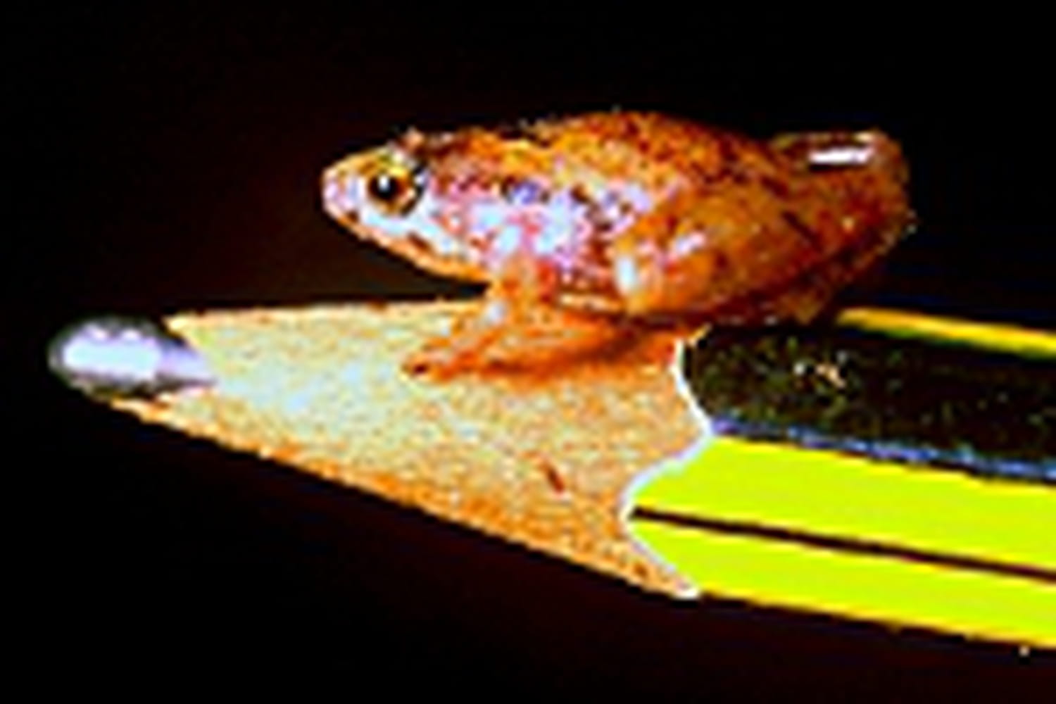 Jamais encore observé en Afrique, Asie ou Europe, ce micro-batracien atteint à l'âge adulte tout juste 10 à 12 millimètres, autant dire la taille d'un petit pois. Etant donnée sa minuscule apparence, les scientifiques ont trouvé une méthode presque infaillible pour la traquer : son cri. L'équipe a tendu l'oreille pour discerner parmi les bruits environnants ses petits coassements distinctifs. Ils ont pu se rendre compte qu'elle vivait sur la népenthes, une plante carnivore !