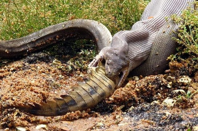 L'attaque du python a débuté dans l'eau. Il lui faudra près de 5 heures pour parvenir à le ramener sur la rive et pour l'étouffer. Une fois le crocodile mort, le serpent commence à l'avaler la tête la première, d'une seule traite... en seulement une quinzaine de minutes.