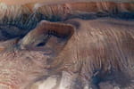 Sur cette image, on distingue très nettement une péninsule volcanique, il s'agit du mont Olympe. Un ancien volcan qui est aussi l'un des plus hauts sommets du système solaire. Il atteint les 21 229 mètres d'altitude ! (Pour rappel, l'altitude de l'Everest, plus haut sommet terrestre, est de 8 848 mètres.) On comprend donc, qu'il puisse surgir ainsi, de l'océan.