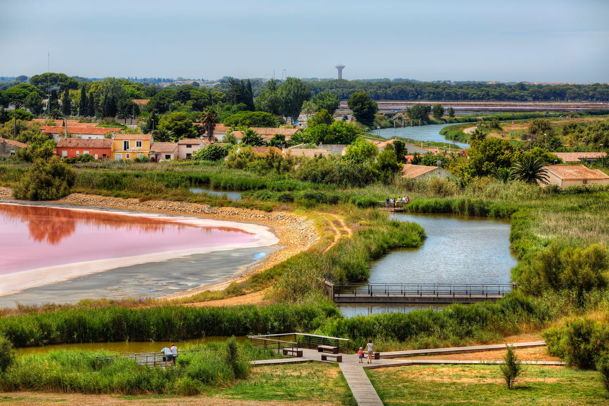 La Camargue est alimentée en eau douce ou peu salée par un réseau de canaux, aussi appelés "roubines". Les marais peu profonds sont colonisés par les iris et les joncs.