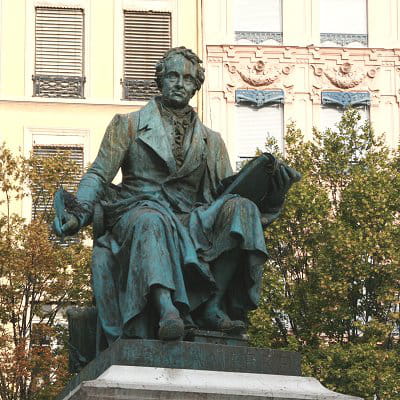 La statue de Pierre Marie Ampère siège au centre de la place du même nom. © L'Internaute Magazine / Laetitia Devillars
