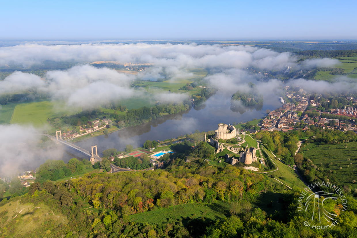 Au-dessus du méandre serré des Andelys, un éperon rocheux porte l'impressionnant château, désiré, conçu et bâti par Richard Cœur de Lion. Chaque pierre, ici, évoque la puissance du bouillant roi d'Angleterre et duc normand. "Qu'elle est belle, ma fille d'un an ! Que voilà un château gaillard !" s'exclama Richard en 1198, à l'issue des travaux de construction qui ne durèrent qu'un an ! Il venait d'installer un verrou stratégique qu'il pensait définitif face aux velléités du roi de France, Philippe Auguste.