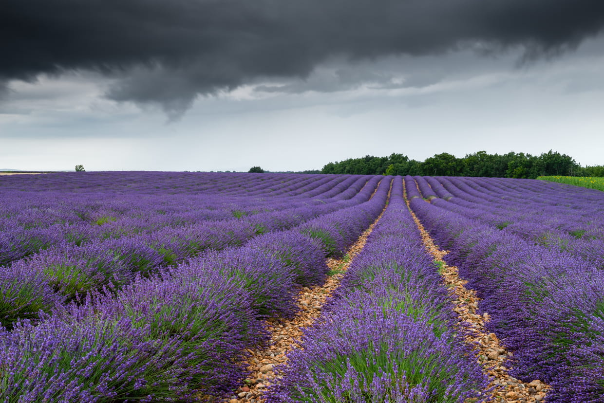 Bénéficiant d'un climat méditerranéen, la Provence est certes le pays du soleil mais la pluie et les orages peuvent cependant faire parfois partie du paysage et donner aux champs de lavande des couleurs et des parfums très intenses.