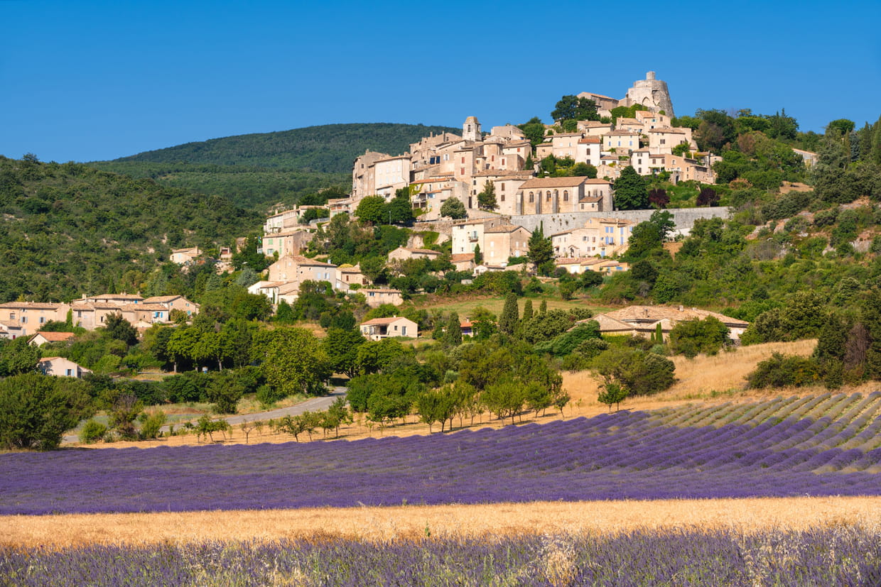Située entre les massifs du Mont Ventoux, Luberon et Lure, Simiane-la-Rotonde est une petite cité médiévale qui doit sa renommée à la Rotonde, ce donjon circulaire du XIIe siècle qui domine la butte sur laquelle le village est perché. En juin et juillet, les champs autour du village explosent d'une profusion de bleus lavande.