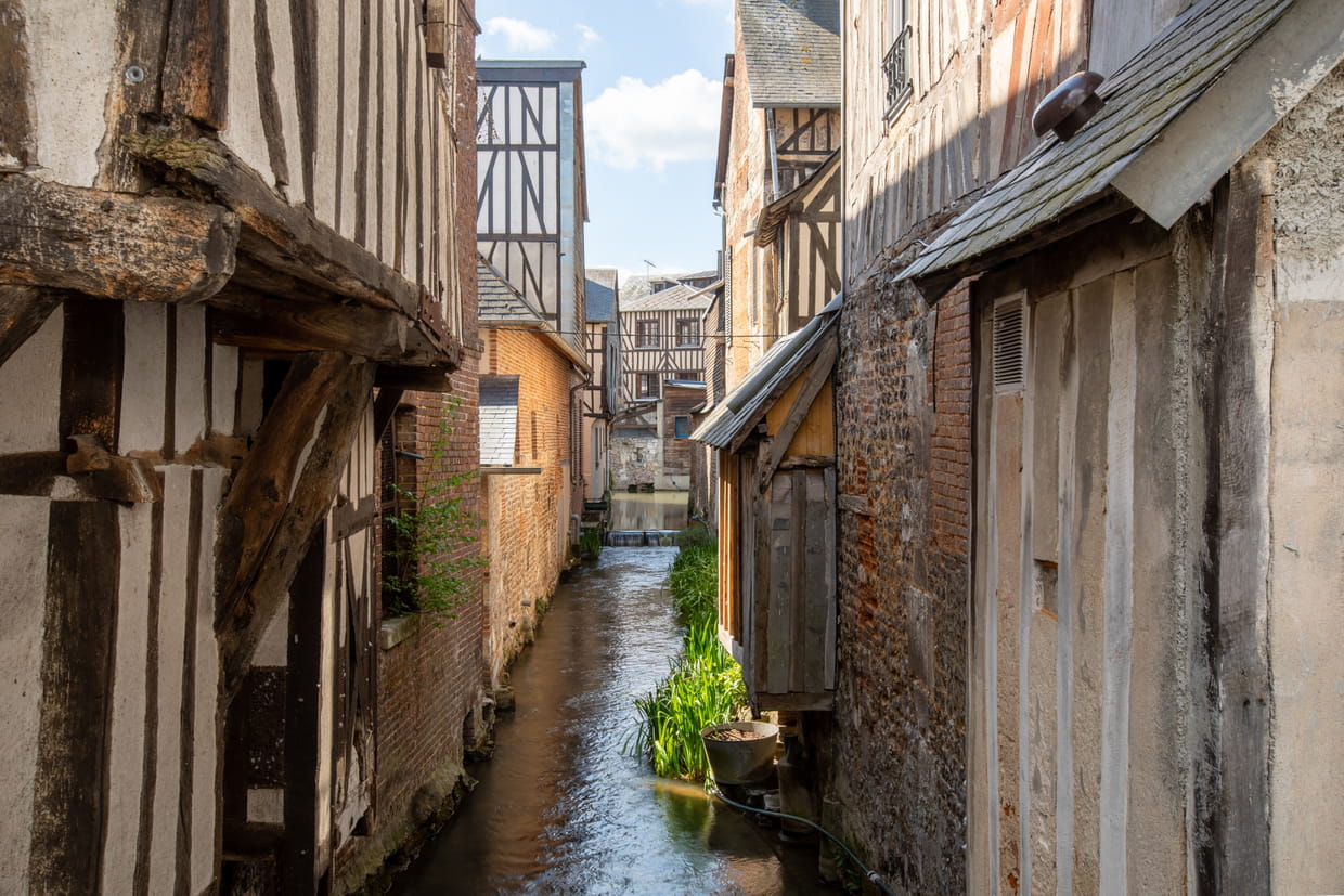 Dans l'Eure, Pont-Audemer doit son surnom de "Venise normande" en raison de ses canaux pittoresques qui parcourent le village médiéval. Avec ses maisons à colombages, ses ruelles pavées et ses ponts anciens, cette petite cité de tannerie réputée nous plonge dans une atmosphère bucolique et romantique.