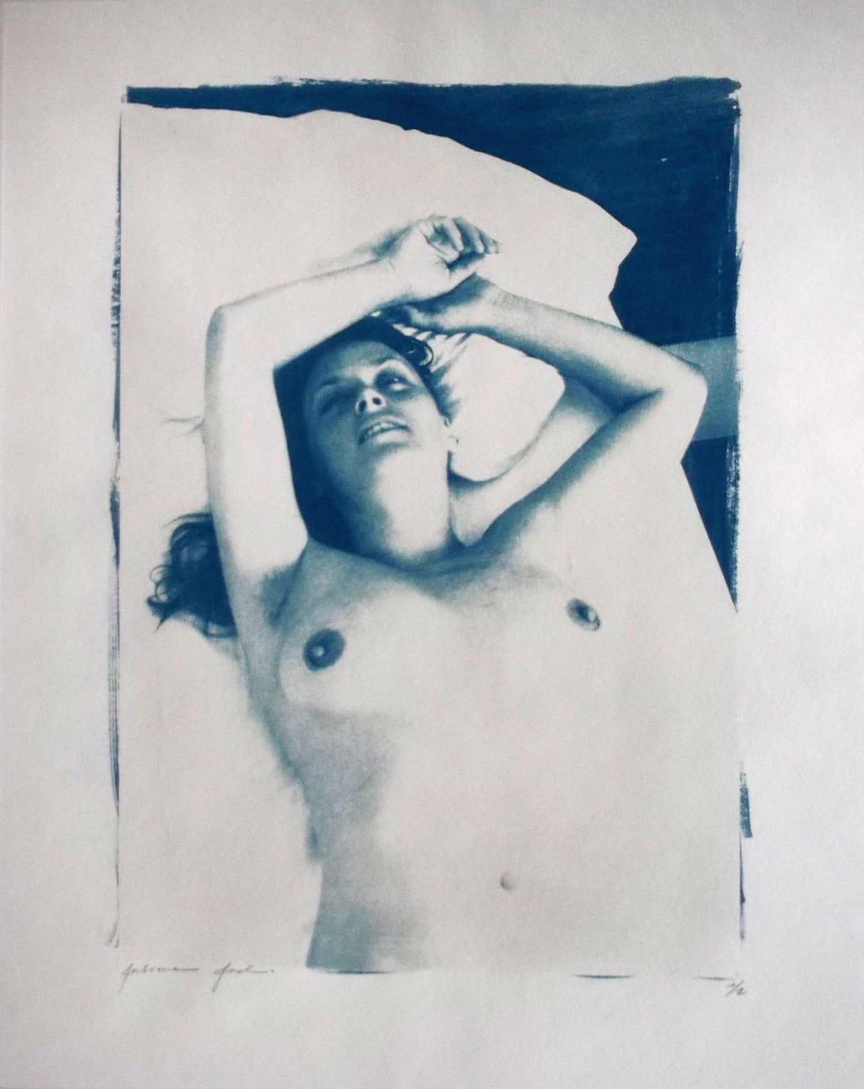 "À l'origine de cette exposition, j'avais le désir de montrer la sensualité des corps qui se mélangent et la variété des goûts sensuels. En utilisant le procédé ancien du cyanotype, j'ai voulu rendre la douceur de la peau et la qualité de la tendresse choisie", commente la photographe Fabienne Forel